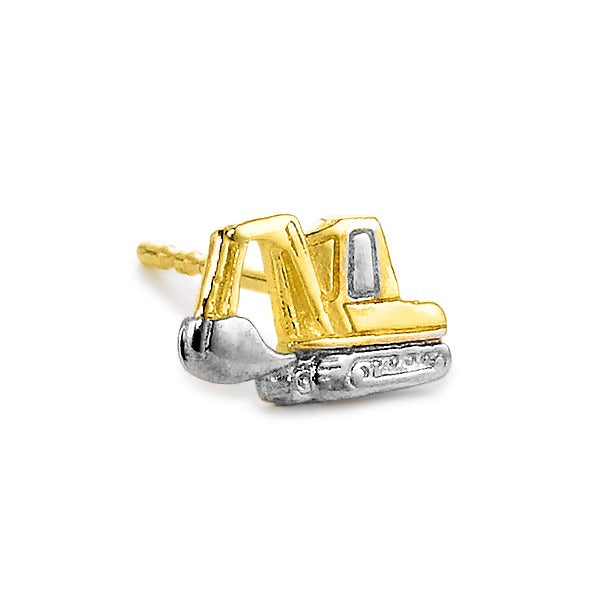 Pendiente para hombre en oro amarillo 375, con diseño original de vehículo de construcción. Un accesorio único y divertido que combina estilo y personalidad, ideal para quienes aman la construcción y los detalles especiales. Calidad y elegancia en una pieza pequeña y elegante.