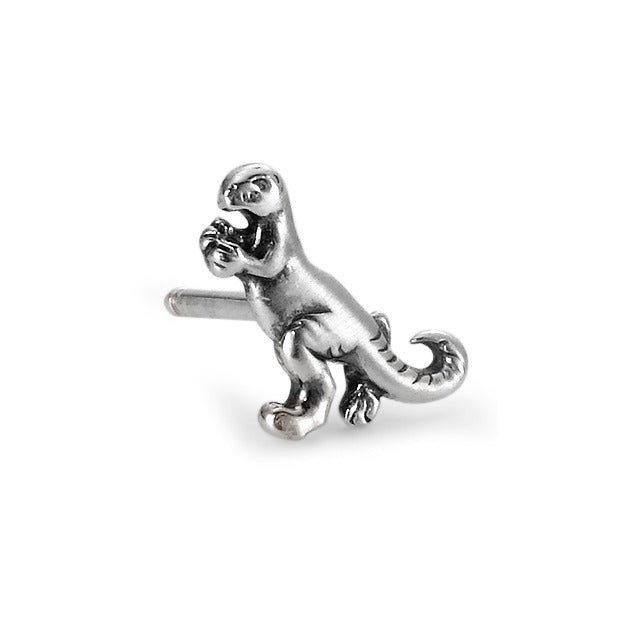 Pendiente de hombre en plata con diseño de dinosaurio. Detalle único y moderno, ideal para quienes buscan un estilo original y atrevido. Precio por unidad. Perfecto para regalar o para complementar cualquier look con un toque divertido y elegante.