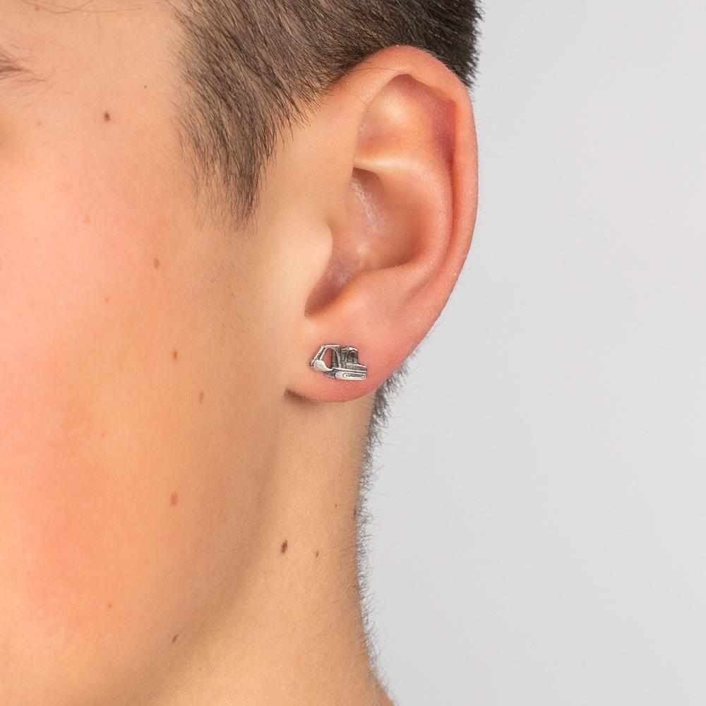 Pendiente para hombre en plata con diseño de excavadora. Una pieza original y detallada que aporta un toque único y moderno a cualquier look. Ideal para los amantes de las maquinarias y estilos atrevidos. Incluye 1 unidad.