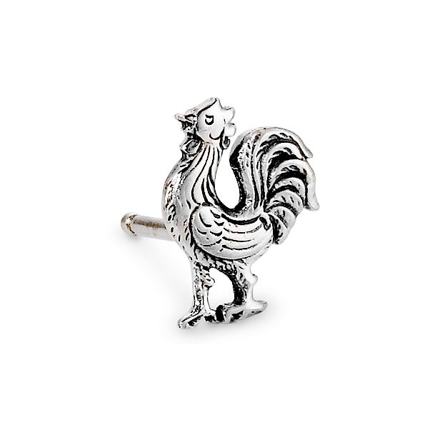 Pendiente de hombre de plata con diseño de gallo. Este elegante y detallado pendiente aporta un toque único y simbólico a tu estilo diario. Perfecto para quienes buscan un accesorio distintivo y con carácter. Incluye una unidad, ideal para combinar o regalar.