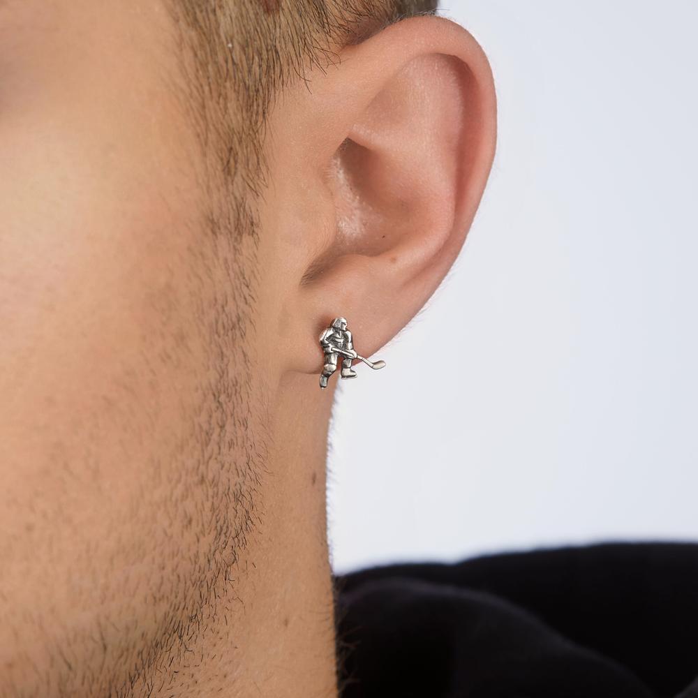 Pendiente para hombre, pieza única en plata, con diseño detallado de jugador de hockey sobre hielo. Perfecto para los amantes del deporte y el estilo discreto. Un accesorio original y elegante que destaca pasión y personalidad en cualquier ocasión.