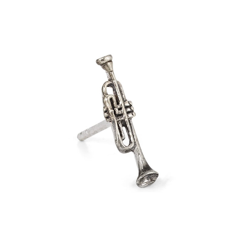 Pendiente de hombre en plata con diseño de trompeta, ideal para amantes de la música. Este sencillo y moderno pendiente aporta un toque original y elegante a tu estilo diario. Perfecto para combinar con cualquier atuendo, mostrando tu pasión por la música con discreción.