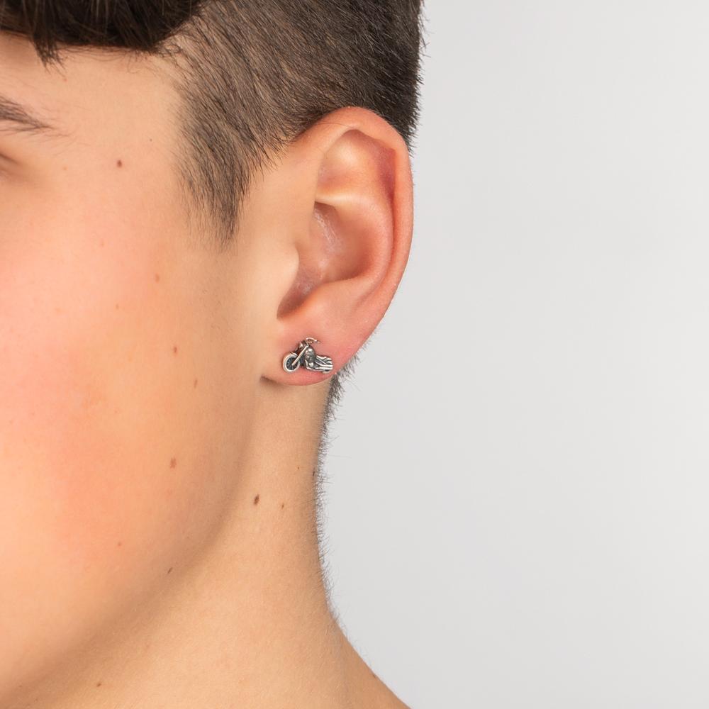 Pendiente para hombre en forma de motocicleta, hecho de plata de alta calidad. Diseño detallado y llamativo, perfecto para los amantes de las motos que quieren un accesorio único y moderno. Ideal para uso diario o como regalo especial. Viene en unidad individual.