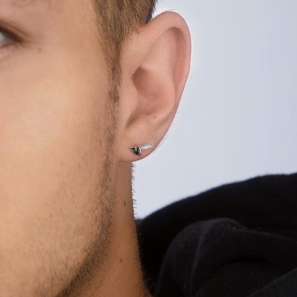 Pendiente para hombre en forma de motosierra, fabricado en plata de alta calidad. Un diseño único y original que destaca por su detalle y tamaño discreto. Perfecto para quienes buscan un accesorio atrevido y distinto en su estilo diario. Se vende por unidad.