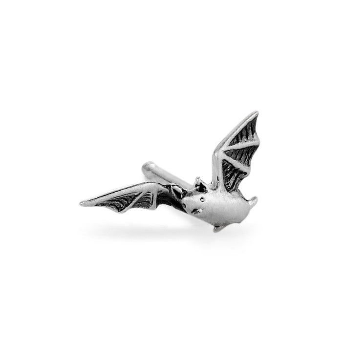 Pendiente de plata con diseño de murciélago, ideal para quienes buscan un toque original y elegante. Hecho con materiales de alta calidad, este pendiente destaca por su detalle y estilo único, perfecto para uso diario o ocasiones especiales. Disponible en unidad.