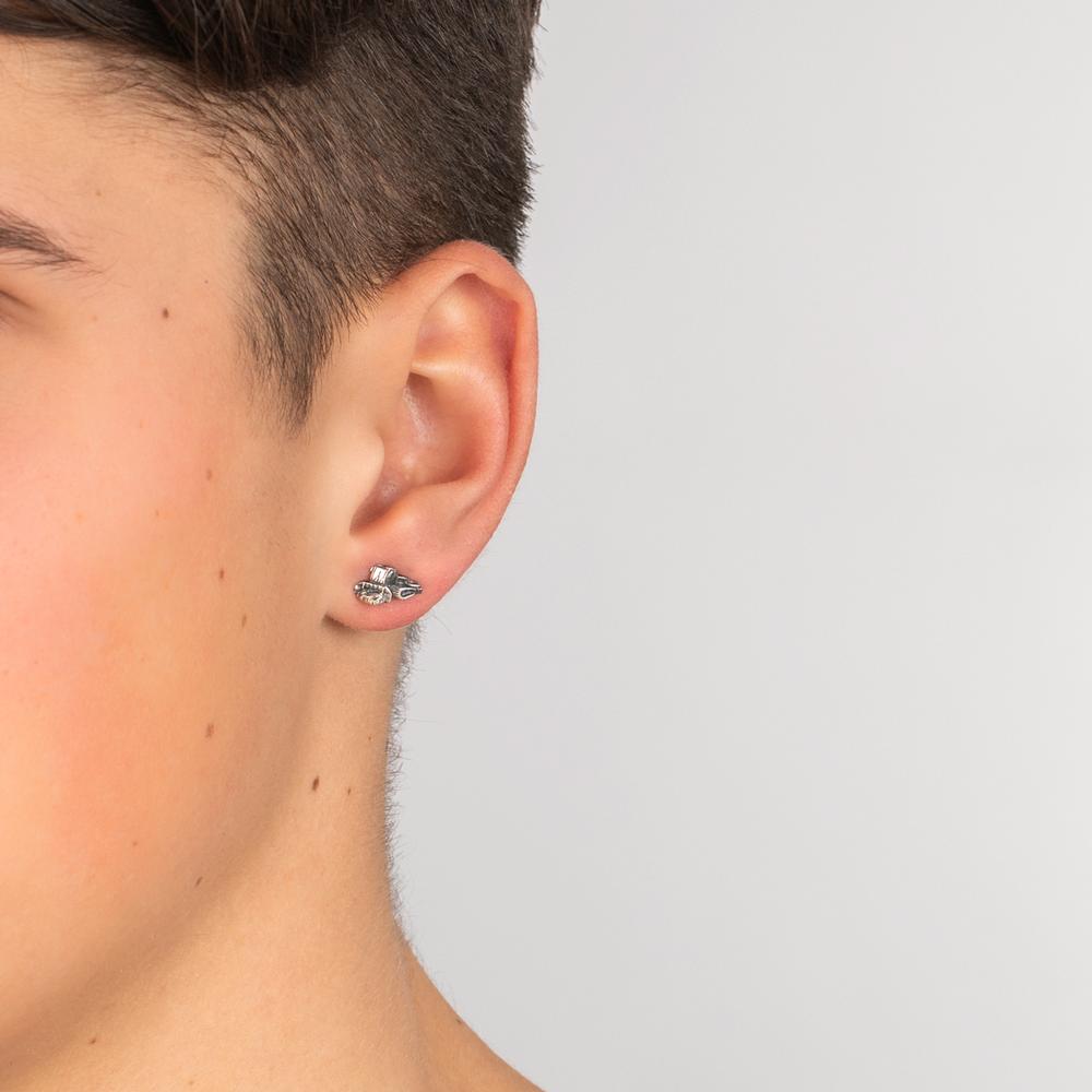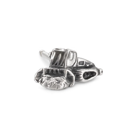 Pendiente de plata para hombre en forma de máquina pisanieves (Pistenbully). Diseño detallado y robusto, ideal para amantes de los deportes de invierno y la maquinaria de montaña. Un toque único y masculino para tu estilo diario. Calidad y originalidad en un solo accesorio.
