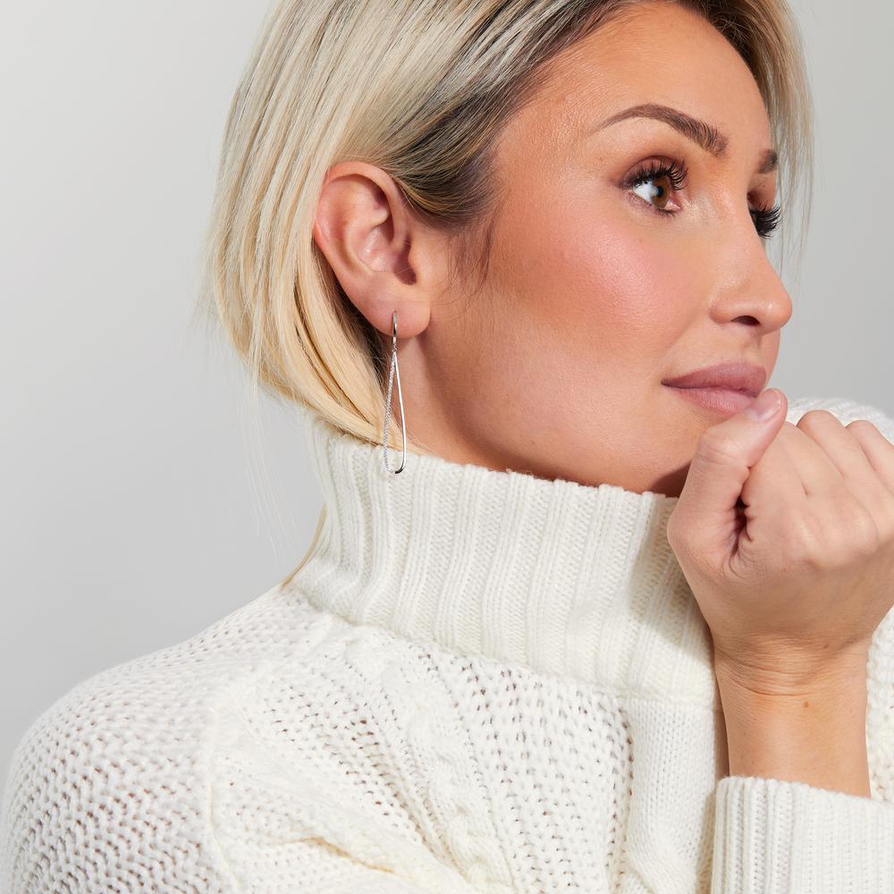 Pendientes de mujer elaborados en oro blanco de 18 quilates (750) con un diseño elegante y moderno. Con forma alargada y adornados con finos diamantes que aportan brillo y sofisticación. Perfectos para ocasiones especiales o para un toque de lujo diario.