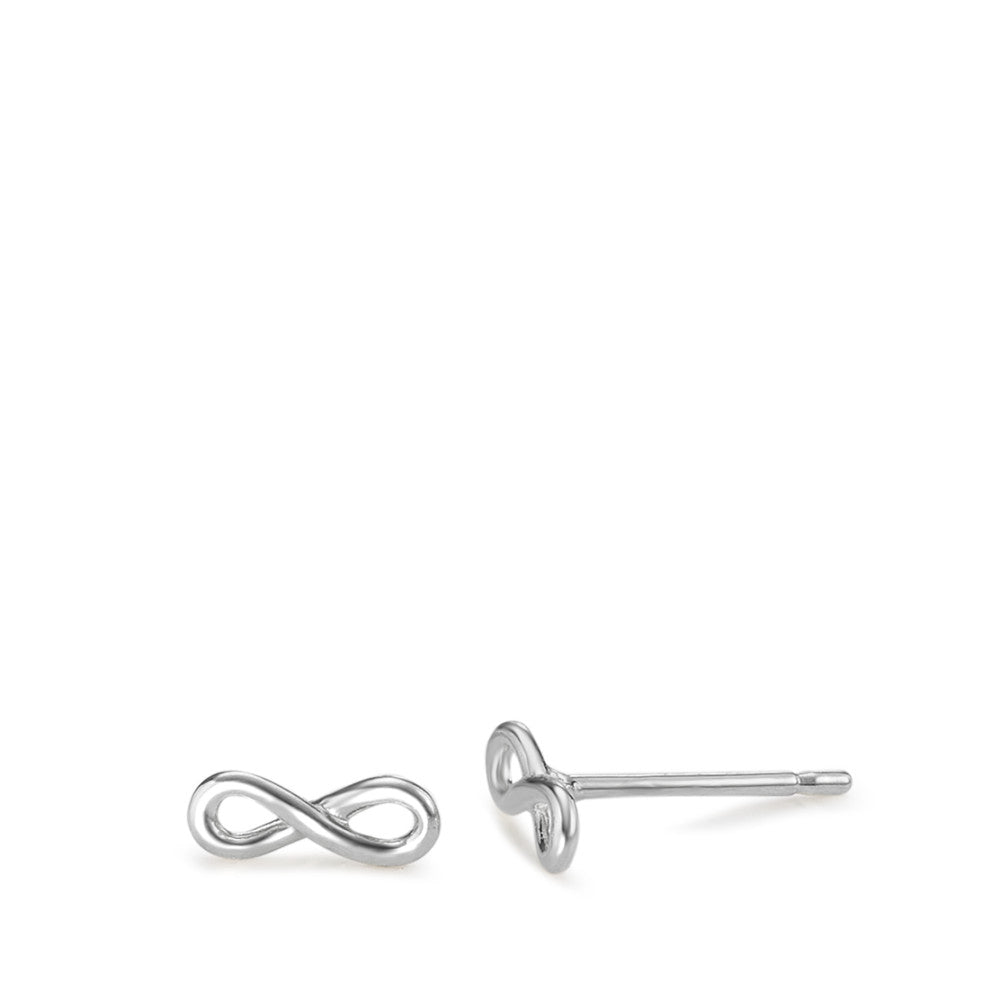 Elegantes pendientes de mujer en oro blanco 750, con diseño infinito. Un símbolo de amor y eternidad para lucir en cualquier ocasión. Su acabado pulido y tamaño delicado los hacen perfectos para el día a día o eventos especiales. Calidad y estilo en cada detalle.