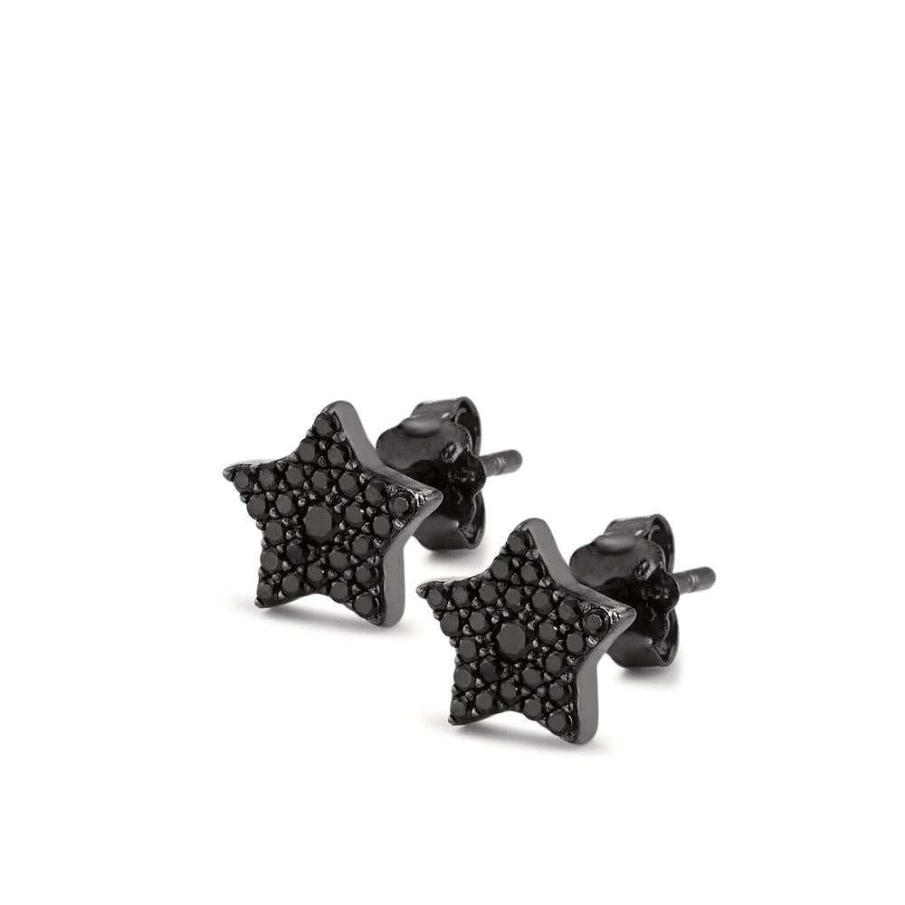 Pendientes Metal Circonita Negro Rodio plateado estrella Ø8 mm
