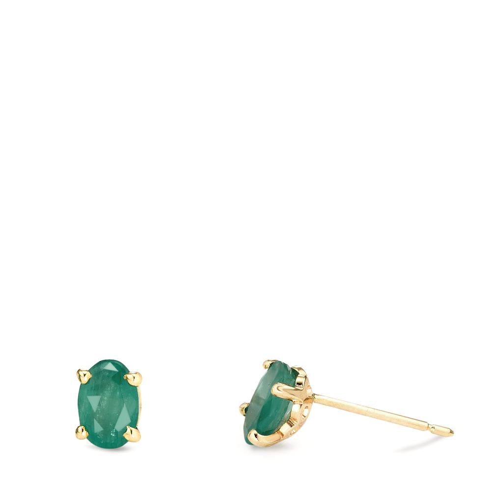 Pendientes de botón para mujer en oro amarillo 375, con deslumbrantes esmeraldas talladas en forma ovalada. Un diseño elegante y atemporal que realza cualquier look, ideal para lucir en ocasiones especiales o en el día a día. Calidad premium y brillo excepcional garantizados.