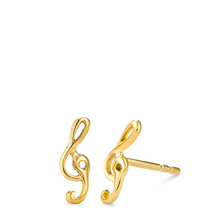 Pendientes para niña en oro amarillo 375, con diseño de clave de sol. Un accesorio delicado y elegante que refleja la pasión por la música. Perfectos para mostrar estilo y personalidad en cualquier ocasión especial o diaria. Calidad y brillo asegurados.