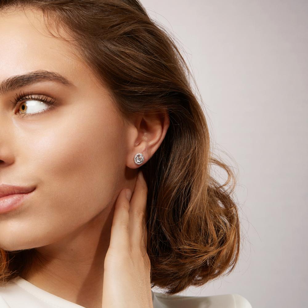 Pendientes de botón para mujer, elaborados en plata de alta calidad y adornados con brillantes circonitas. Su diseño elegante y clásico aporta un toque de sofisticación a cualquier look, perfecto para usar en ocasiones especiales o en el día a día.