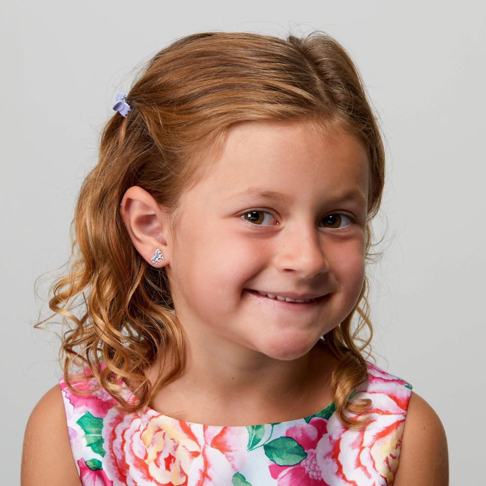 Pendientes para niñas en plata con diseño de caballo. Un accesorio delicado y encantador que añade un toque especial y divertido a cualquier look. Perfectos para niñas que aman los animales y buscan un estilo dulce y elegante. ¡Un regalo ideal!