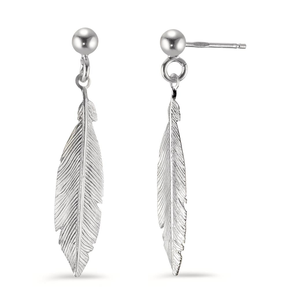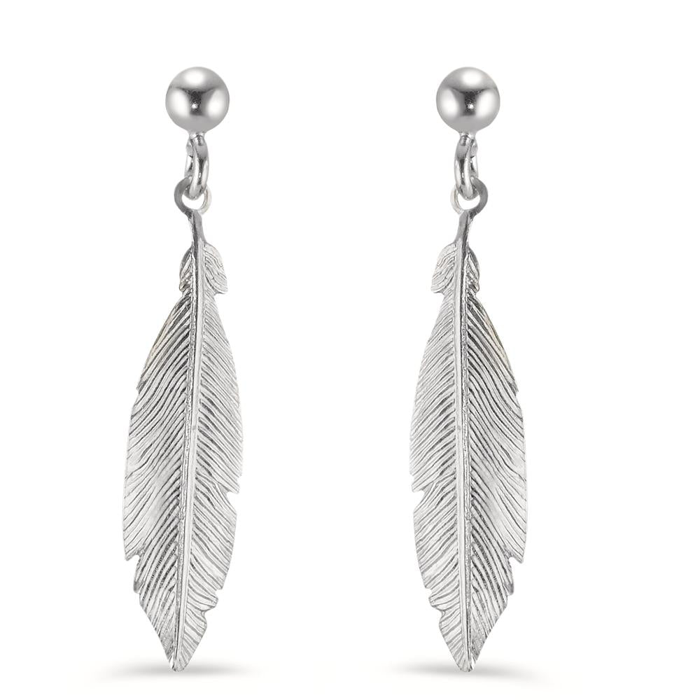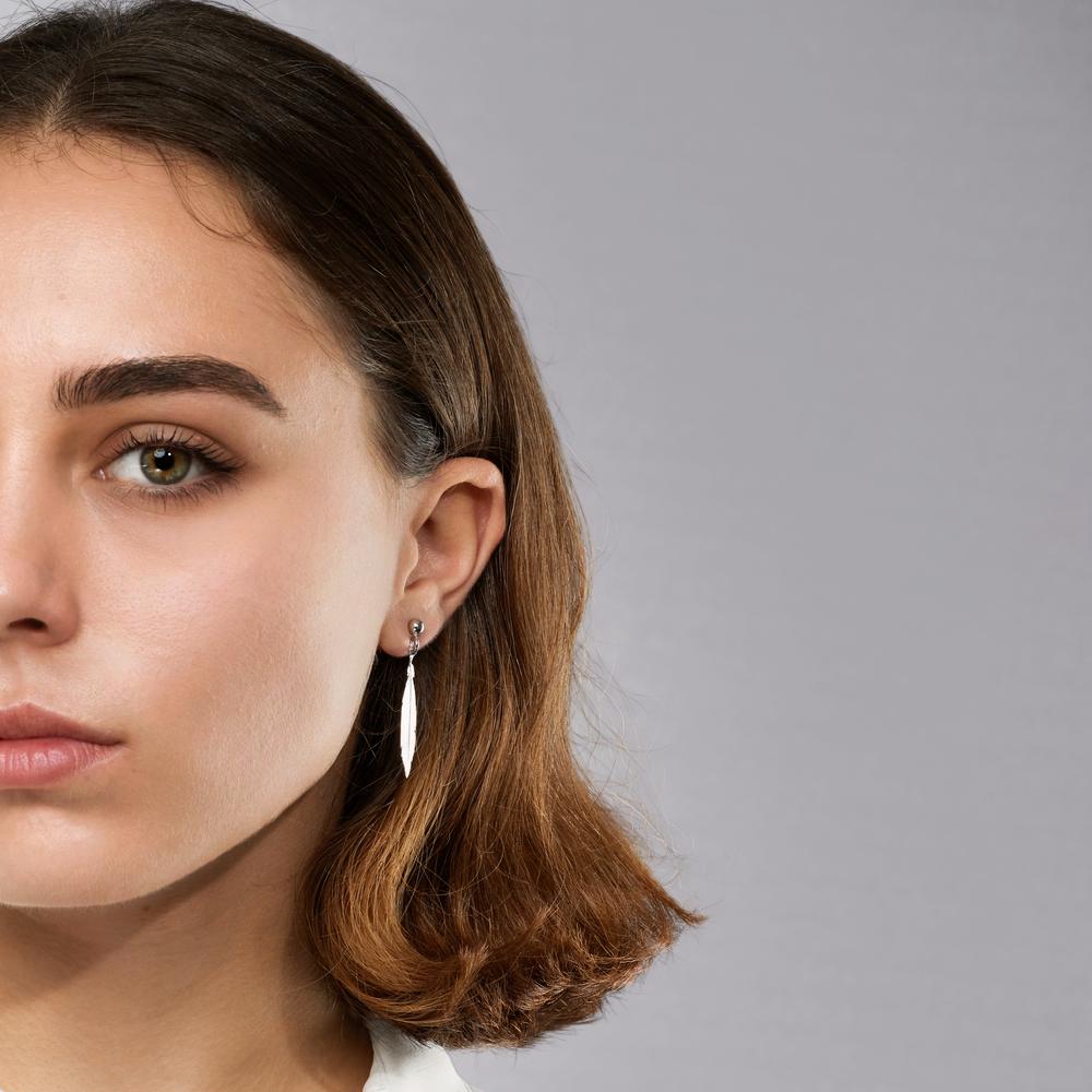 Pendientes colgantes para mujer en plata con diseño de pluma. Elegantes y delicados, aportan un toque natural y sofisticado a cualquier look. Perfectos para el día a día o para ocasiones especiales, combinan comodidad y estilo en un accesorio ligero y detallado.
