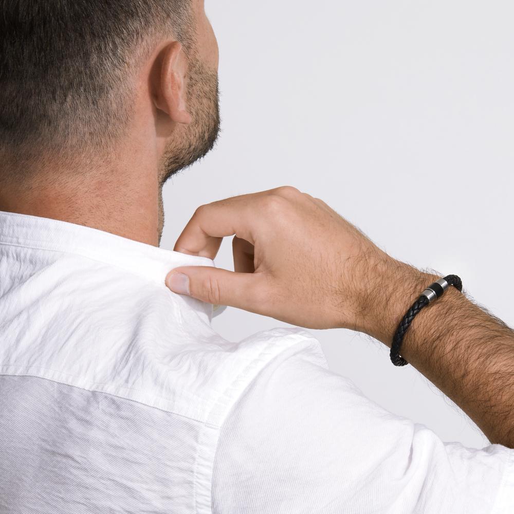 Pulsera para hombre elegante y moderna, confeccionada con cuero trenzado de alta calidad, acero inoxidable y cerámica. Combina durabilidad y estilo con un cierre magnético seguro, ideal para complementar cualquier look masculino con un toque sofisticado y contemporáneo.