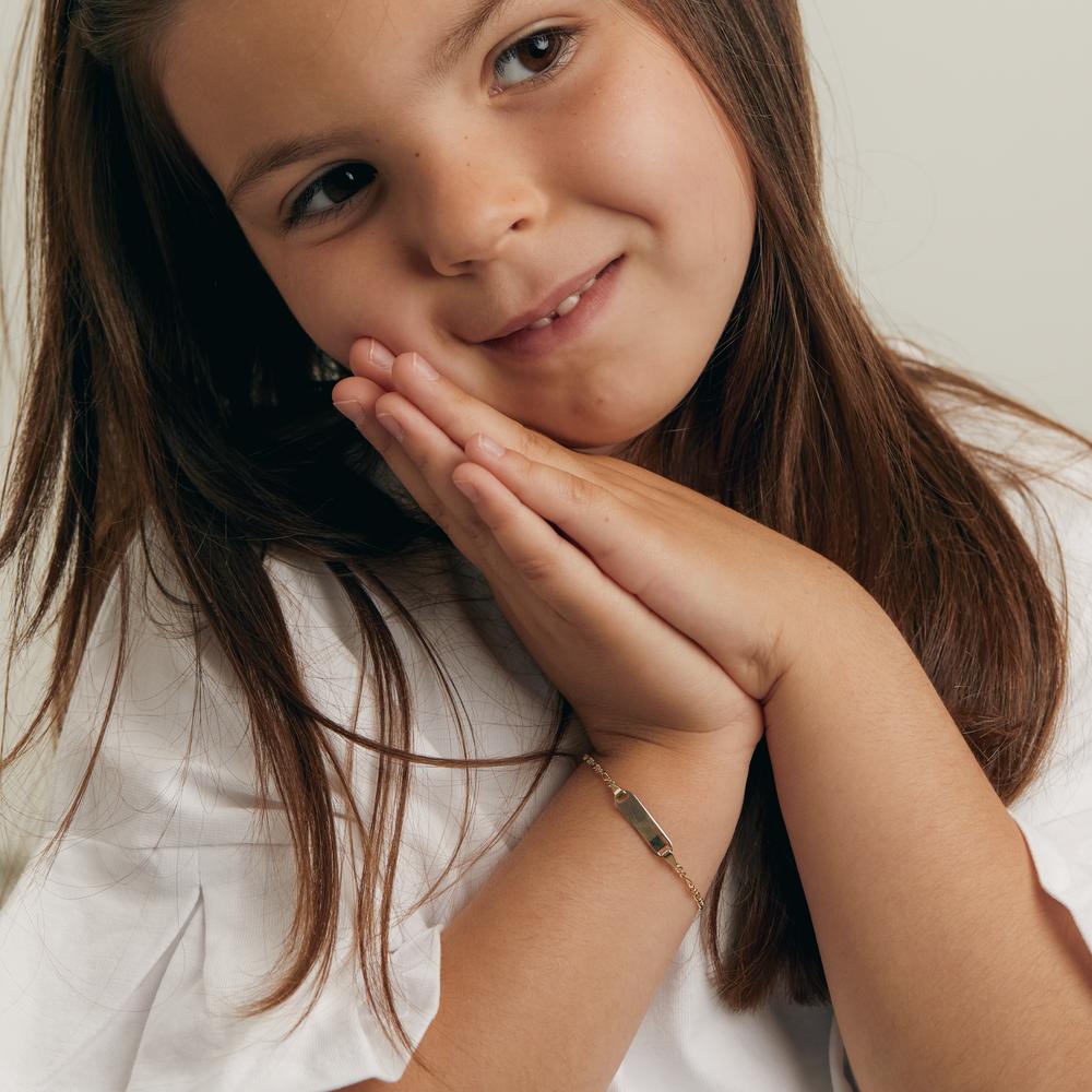 Pulsera para bebé en oro amarillo 750 de alta calidad, con diseño delicado y elegante. Ideal para grabar un nombre o fecha especial, este brazalete es un recuerdo precioso y duradero. Perfecto como regalo para momentos inolvidables.