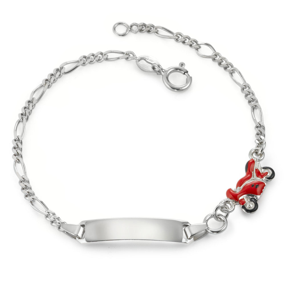 Pulsera grabada para niños en plata, con diseño delicado y charm rojo en forma de bicicleta. Perfecta para un toque personal y elegante. Ideal para regalar y personalizar con un nombre o fecha especial. Calidad, estilo y diversión para los más pequeños.